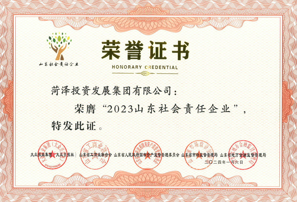 【彰顯新時(shí)代責(zé)任國企新作為】菏澤投資集團(tuán)蟬聯(lián)“2023山東社會(huì)責(zé)任企業(yè)”
