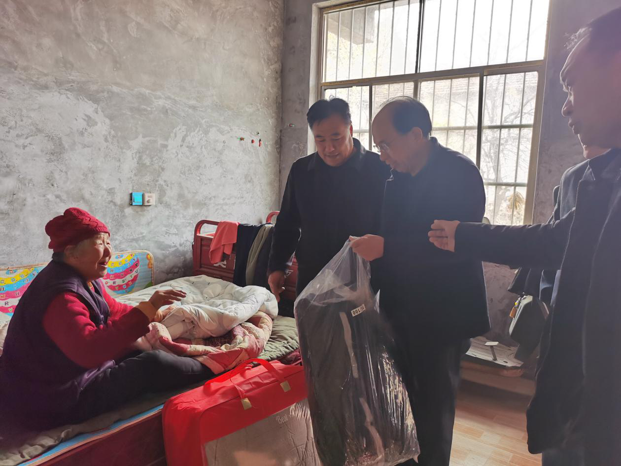 2019年11月22日,時值小雪節(jié)氣,氣溫開始驟降,菏澤投資發(fā)展集團有限公司黨委書記、董事長徐文芹帶領(lǐng)公司黨委成員、副總經(jīng)理祝傳隨,黨委成員、副總經(jīng)理肖培飛及工作組有關(guān)同志到幫包村調(diào)度駐村第一書記工作,為39戶貧困戶送去御寒棉衣、棉被,確保貧困戶能夠溫暖過冬。