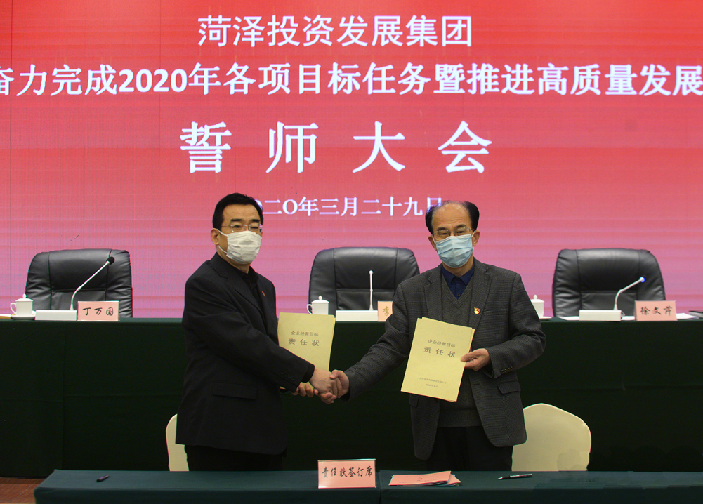 3月29日上午,菏澤投資發(fā)展集團有限公司在牡丹大酒店三樓會議室召開2020年度誓師大會。大會以“創(chuàng)新思維 轉變作風 擔當作為 奮力完成2020年各項目標任務暨推進高質量發(fā)展”為主題。公司黨委書記、董事長徐文芹主持會議并作講話,公司市管干部、合署辦公機構全體人員,各企業(yè)中層副職以上人員參加了會議。會議特邀市國資委黨委委員、副主任李仰春,國有企業(yè)高質量發(fā)展服務六隊領導任殿湘蒞臨會場指導。