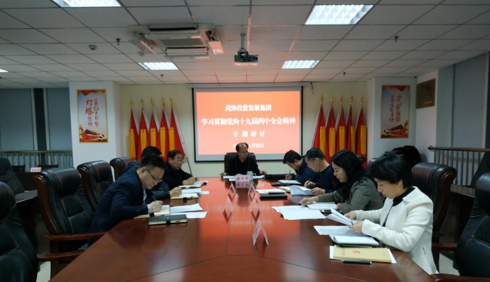 為深入學習貫徹黨的十九屆四中全會精神,扎實推進“不忘初心、牢記使命”主題教育,根據公司黨委工作安排,11月22日,菏澤投資發(fā)展集團有限公司領導班子黨員成員圍繞“學習貫徹黨的十九屆四中全會精神”這一主題進行集中研討。
