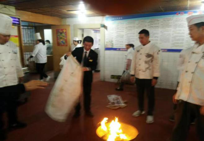 首先由督查安監(jiān)部主管對(duì)員工進(jìn)行廚房的油、電、氣的正確使用進(jìn)行詳細(xì)的講演,對(duì)工作中可能出現(xiàn)的突發(fā)事故進(jìn)行了詳細(xì)分析;然后針對(duì)可能發(fā)生著火事故的燃?xì)庑孤⒂湾伷鸹鸷笳_滅火的使用方法進(jìn)行了實(shí)戰(zhàn)演練,通過學(xué)習(xí)使全體員工熟練掌握了滅火毯及滅火器的正確使用方法。